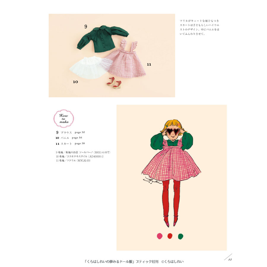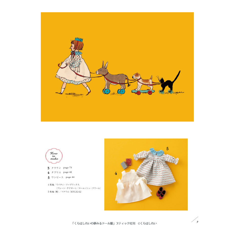 イラストレーター くらはしれい さんのデザインをドールサイズの生地にした、特別なミニチュア生地が『くらはしれいの夢みるドール服』に掲載いただきました。