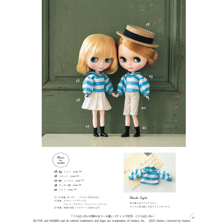 絵本作家・イラストレーターのくらはしれいさんが描く、どこか懐かしくてあたたかい雰囲気のイラストを忠実に再現したドール服の本。ネオブライスサイズの可愛らしいお洋服と小物を44点掲載。オリジナルのミニチュアファブリックもご紹介。実物大の型紙つき。