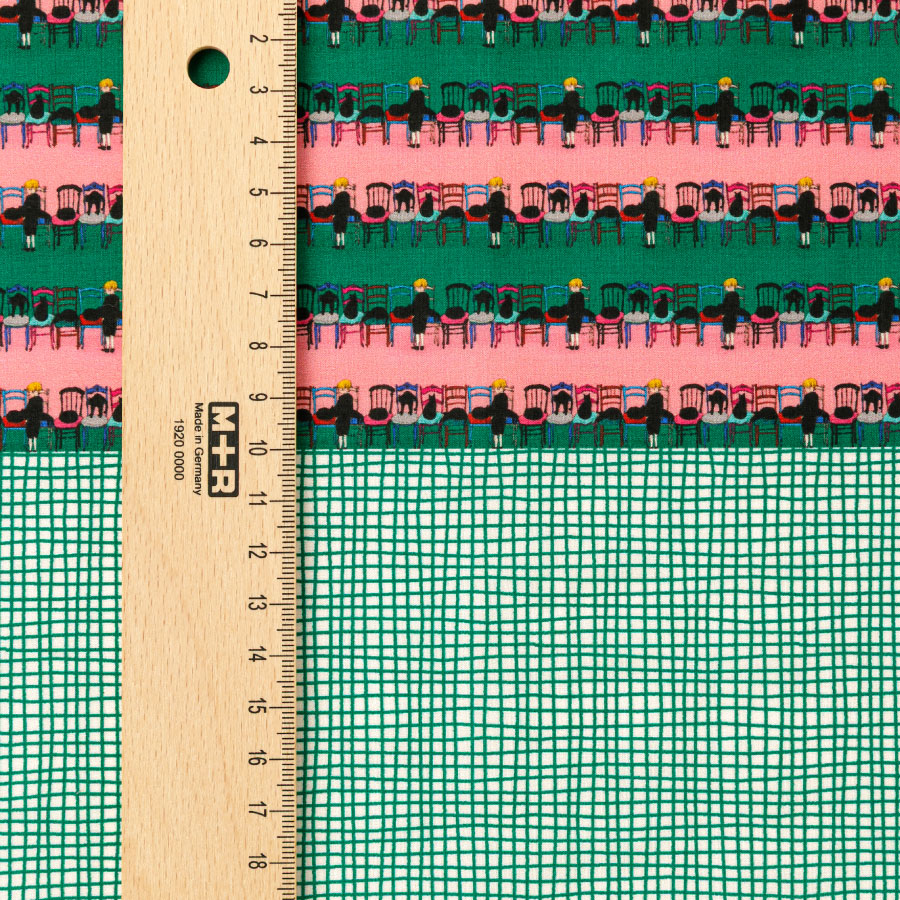 通常サイズの生地の柄をミニチュアサイズに縮小した柄の生地と